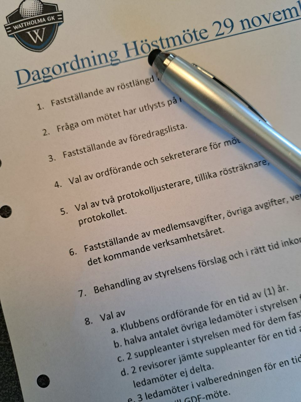 Motioner skall vara styrelsen tillhanda senast den 29/10 på e-post info@wattholmagk.se